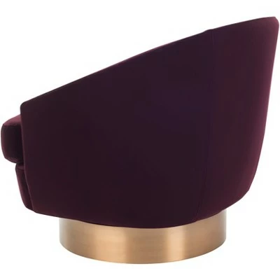 Embrace a new spin on luxury with this decadent contemporary swivel club chair. Inspired by vintage Italian designs, its comforting curves and brushed stainless steel instantly elevate any living room. Designers love its Giotto Cabernet color. Care Instructions: UPHOLSTERY CARE: To prevent overall soiling, frequent vacuuming or light brushing is recommended. Cushions and pillows should be turned on a weekly basis. Down filled cushions should be brushed rather than vacuumed. Spot clean using a mild, water free solvant or dry cleaning the product. Only a professional cleaner should undertake a complete overall cleaning. The use of steam or water based cleaners may cause excessive shriking or staining.