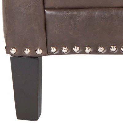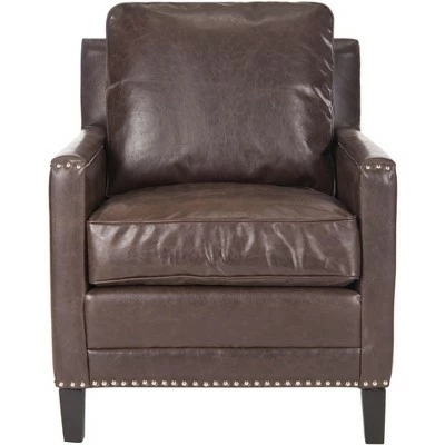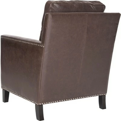A classic silhouette gets a fresh new look in this Buckler Club Chair. Trendy and transitional, Buckler is luxuriously comfortable, with nail head trim and espresso finished birch wood elevating the familiar form to the height of fine contemporary decorating. Care Instructions: To prevent overall soiling, frequent vacuuming or light brushing is recommended. Cushions and pillows should be turned on a weekly basis. Down filled cushions should be brushed rather than vacuumed. Spot clean, using a mild water free solvent or dry cleaning product. Only a professional cleaner should undertake a complete overall cleaning. The use of steam or water based cleaners may cause excessive shrinking or staining.