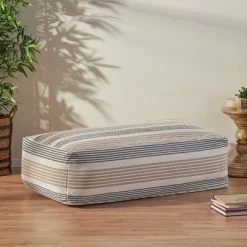 Accentuate the coziness of your home with an accessory of ultimate comfort. This pouf ottoman is delightfully versatile with its perfect proportions, letting you use it as an extra seat, a temporary table, or a relaxing footstool. Featuring a clean striped design, this pouf bench offers your indoor space an uplifting atmosphere with a finishing hand-crafted touch. Seamlessly blending into any arrangement with its understated design, this pouf ottoman is not only one-of-a-kind but is also resilient, making this the perfect indoor accessory.