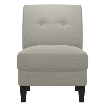 Looking for a stylish chair for your home that is comfortable too? This George armless chair boasts an updated transitional design that will elevate your home. The chair features a slightly angled back with a button tufted design, sinuous springs and a thick foam cushion for extraordinary comfort. Ideal for small spaces, this chair works great in offices, bedrooms, rec. room or living rooms.