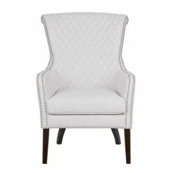 Surround yourself in style with a Colette Wing Chair in linen by JLA Home. This chic accent chair combines sophistication and comfort with its beautiful sculptural design, textured fabric and generous seat depth. It sits sturdily on solid wood legs with a warm espresso finish. Tuck this wingback chair in your home office to give yourself a place to relax and read.