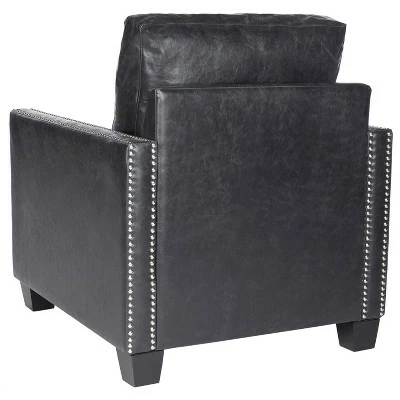 For a classic club look with modern updates, look to the Safavieh Venice Club Chair. The classic club silhouette is present here, but upgraded with a shiny, trendy nailhead trim. Generously padded loose cushions can be moved around to suit your body. Upholstered in an attractive black faux leather, this chair is the perfect blend of timeless design and easy comfort. Put it in your living room, or in a nice cozy corner where you can curl up with your favorite book.