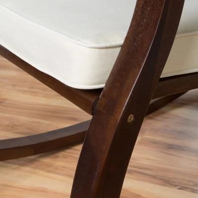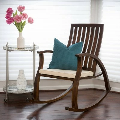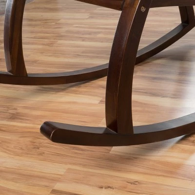 The Abraham rocking chair is an attractive piece built from soft brown mahogany wood with panel seat and backrest. This piece is equipped with plush cushions, creating a comfortable seating experience that can be placed in any room.