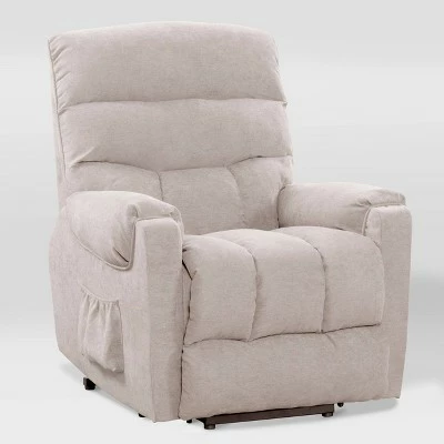 The perfect solution to make life more accessible and enjoyable from the comfort of your own home. A pillow soft, yet firm cushion construction is wrapped in a soft chenille fabric, making this ergonomic power lift assist recliner perfect for people with limited mobility. Choose your ideal comfort with the touch of a button, powering the quiet motor through gentle moving transitions to help you sit, lie down or stand up. A functional and durable addition to any living room or entertainment space