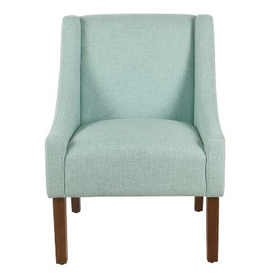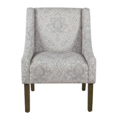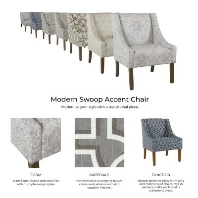 The modern lines and pattern of this Swoop Accent Chair create an easy update for any room in your home. Featuring side swoop arms for added comfort and style, this swoop chair works well as extra seating in a living room or home office, or as an accent chair in a bedroom. Pair two together for added impact. Offered in a range of trend right patterns and colors to make it easy to blend with a wide range of interior design styles. Enhanced by wood legs in a range of finishes, this swoop chair is easy to assemble and maintain.