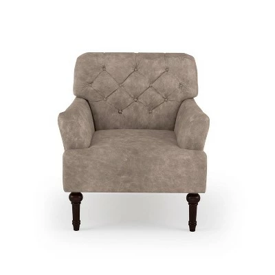- Deep button tufted back and turned-style legs