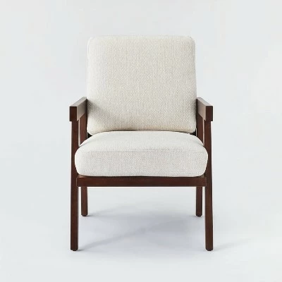Give your home’s living space a luxe upgrade with the Grantsville Wood Frame Accent Chair with Grid Back from Threshold™ designed with Studio McGee. This sleek accent chair is perfect for completing the look of your living space. The elegant wood frame in a dark tone combined with the neutral tones of the upholstery make for a stylishly sophisticated look that pairs easily with almost any design theme or aesthetic in your homes. Pair with bold hues and eccentric decor for a playful and unique space or with minimalist decor and metal tones for a space that feels relaxed and elevated. Spot or wipe clean for quick maintenance.