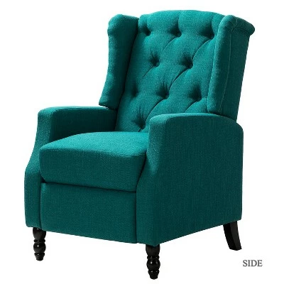 Founded on a solid hardwood frame, a modern take on a classic wing back, this chair boasts accents like thick foam cushioned seat and back with button tufting. Simply push back to recline, no levers or buttons required. Comfortable seat and back support for long-term sitting, TV viewing or a relaxed recline. Clean styling offers a generous seat size and comfort. Great for living room, media, and master bedrooms.Item Size: 27″Wx34.5″Dx41″H, Seat Size:20″Wx22″Dx19.5″H