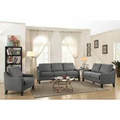 The Zapata contemporary chair is covered with selected gray linen fabric. It features decorative nail head trim and loose seat and backrest cushions with thick plush padding. The cover upholstery is comfortable and comes with a clean line design. This chair is sure to be a great addition to any living room.