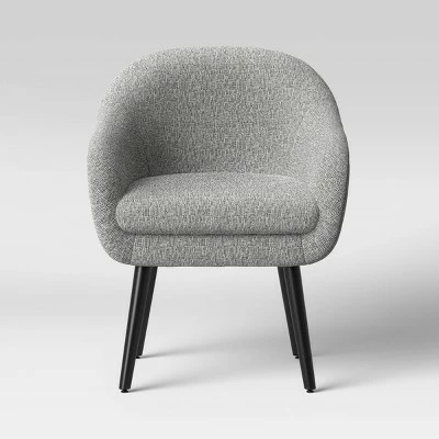 Accent your home with the Harwell Modern Arm Barrel Chair with Wooden Legs from Project 62β’. Dressed in chic textured upholstery, this barrel-style accent chair looks at home in an array of styles, while the seat cushion elevates the sitting experience with padded comfort. It stands on sleek and slanting wooden legs for sturdy support and enhanced visual appeal. Whether you use it in your vanity area or as guest seating in the living room or home office, this upholstered chair helps create a comfy seating spot with a dash of statement style.