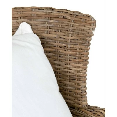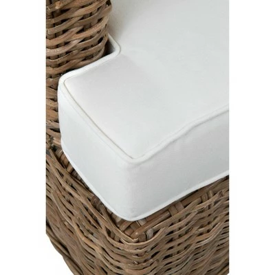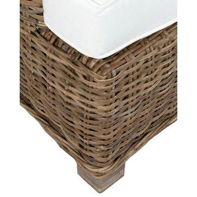We love when a piece of furniture and a coordinated design sense transport you to a faraway place, providing comfort and relaxation in an everyday environment. This wicker chair is hand woven in Indonesia from rapidly renewable rattan, chosen for its sustainability and longevity, and features a Kubu gray finish with an exquisite touch of texture. Paired with a set of removable polyester-filled white cushions that are comfortable and durable, the attention to detail on woven arms and legs of this chair make it a beautiful addition to any entertaining area, dining room, reading room, or office. Bring a touch of sophistication to any indoor or covered outdoor living environment inspired by a coastal, cottage, or farmhouse design aesthetic.