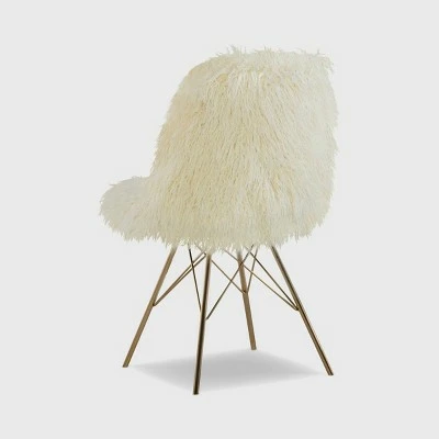 Dramatic and bold, the Remy Faux Fur chair is a trendy addition to a bedroom, desk or living space. The chair features a cream faux fur seat and brushed gold metal legs. Perfect for adding texture, style and seating to your space.