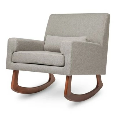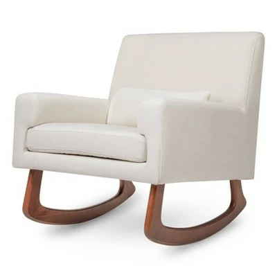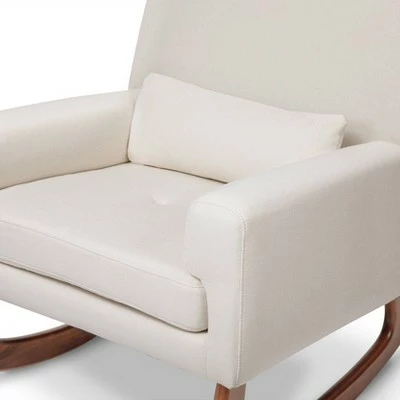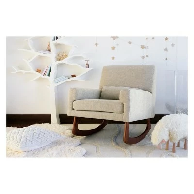 The well-balanced Sleepytime Rocker by Nursery Works is lightly padded and finely upholstered with a fitted back using a crisp and rich polyester, linen and viscose blend. Ash hardwood legs allow for a smooth rocking motion. Available in Walnut legs and Light legs, and a variety of finishes to complement your nursery style.