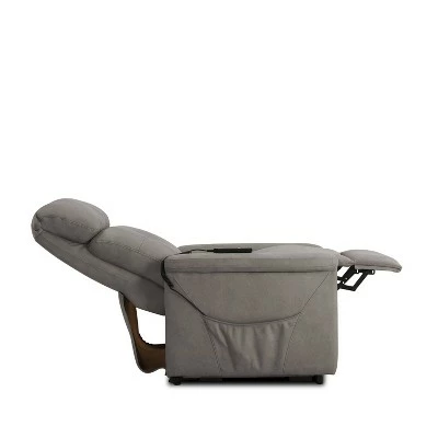 The ProLounger power lift modern style recliner is covered in a gray nubuck fabric and allows you to rise out of your seat with ease while providing padding in all the right places for ultimate comfort. The infinite position recliner transitions between reclining, sitting and lifting and can stop at any position in-between with the easy to use wired attached remote. This power lift chair can be extremely helpful for seniors or people with mobility challenges and is the perfect chair to add to living rooms, bedrooms, theater rooms and media rooms.
