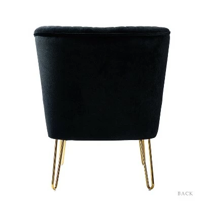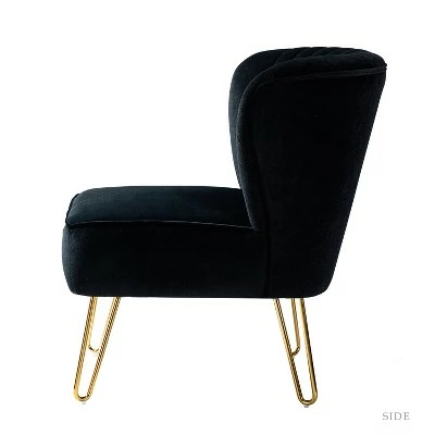 Looking to add a side chair to your living room or bedroom? This one is in keeping with your glam sensibilities, adding an eye-catching touch to your space. This is the classic and contemporary style accent chair with channel tufted back. Made with premium velvet fabric, comfortable for skin touch, and features an on-trend solid hue that’s bound to blend in with your color scheme. High-density foam filling with a solid and manufactured wood frame provides comfort and support. The polished golden metal U-shaped legs bring modern design and add to the timeless fashion of this piece. Plus, this chair’s armless seatback leaves plenty of elbow room for existing furniture. It’s the perfect pick for living room, office room and bedroom.Item Size:26″Wx30″Dx31.5″HSeat size:22″Wx20.5″Dx18″H
