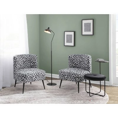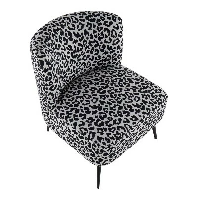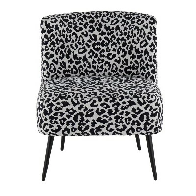 Glam up your sitting area with the beauty of the Fran Slipper Chair. Featuring a sophisticated leopard upholstery that will tie in perfectly with your contemporary decor, this ultra-comfortable padded slipper chair is complemented by tapered black legs. Available in a variety of color combinations, choose the color that ties in with your decor!
