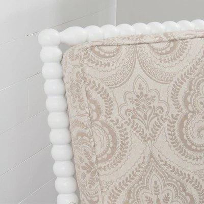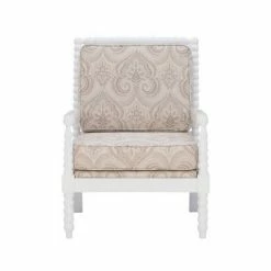 The Sussex Spindle Chair has an eye-catching design and traditional style. The off white wood frame is delicately accented by the plush beige fabric upholstered seat and back. A sophisticated seating addition to a bedroom or living space, this neutral piece will blend seamlessly into any home.