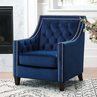 - Transitional style tufted velvet accent chair