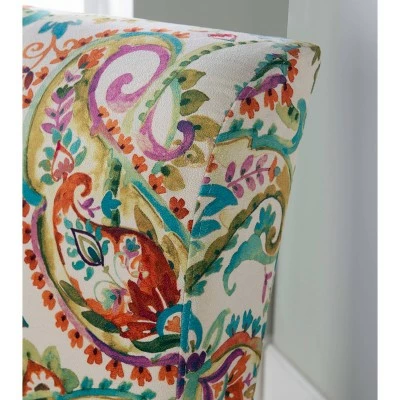 Comfort and class come together to create this curved back slipper chair. The perfect piece for contemporary or cottage-chic styles, this charming accent chair showcases a paisley print and a lovely slipper design. Gently tapered wooden legs with a dark walnut finish support this beautiful chair. Whether you’re looking for a reading chair or simply a pop of pattern, this slipper chair makes a great addition to your home.