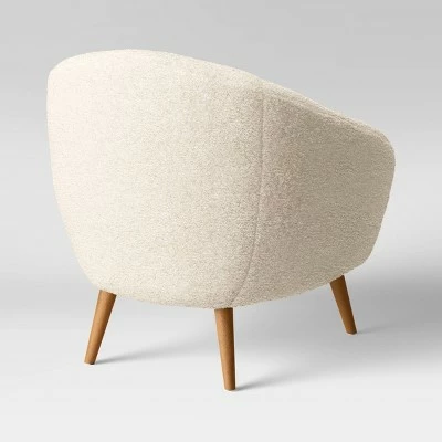 Update your seating arrangement with the cozy style of this Odilia Rounded Sherpa Accent Chair from Opalhouseβ’. Designed with a rounded back for an eye-catching look, this accent chair has sherpa fabric upholstery to add warmth to your space. The tapered natural wood legs enhance the look of the solid color upholstery while adding to the inviting feel. You can use this cream accent chair in your living area, study area or any other space for comfy sitting.