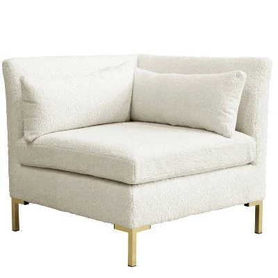 This made to order corner chair offers a pillow top design and it is fashioned in hand upholstered in a soft fabric for extra splendor. Manufactured in Illinois, the piece has metal y-shaped legs and bolster pillows along the back and side that set it apart. Pair it with other sectional pieces to create a modular design that embraces a tasteful, contemporary style. Made to order and easy to assemble, this classy chair is attractive enough to serve as a solo piece as well if that is your preference.