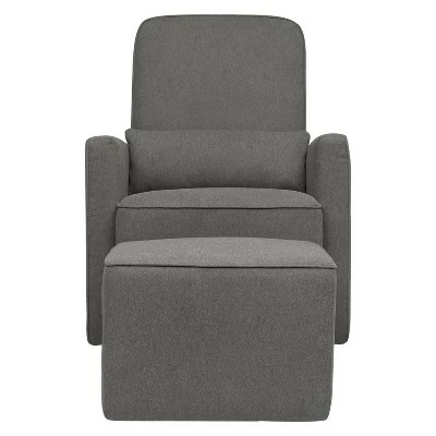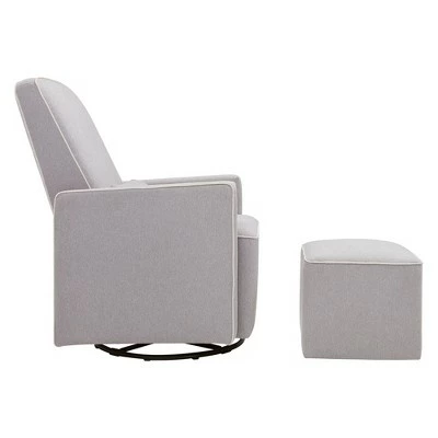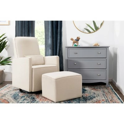 The DaVinci Olive Glider with Ottoman has been thoughtfully designed to meet mom’s and baby’s feeding time needs then transition to your home in the later years. Mom can rest easy in this soft and durable 100% polyester glider that glides forwards and backwards as well as swivels. Bonus upholstered ottoman included to rest those tired feet. Designed with a high back for head and neck support. A matching lumbar pillow is included to offer even more back support when needed.