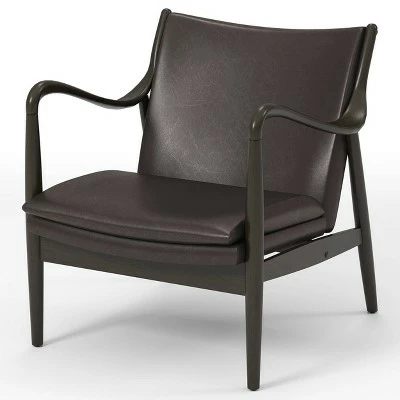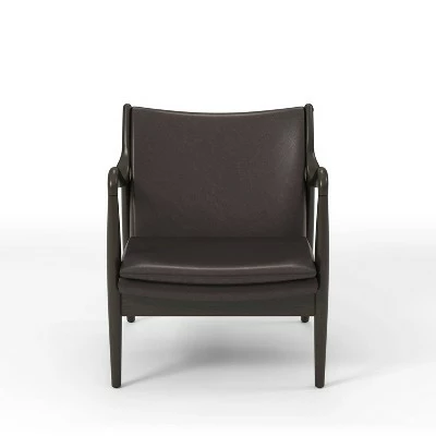 With a touch of masculinity and finesse, this accent chair from the Kelowna collection features a dark brown frame with swooping, bentwood-style arm rests. With a padded backrest and cushion wrapped in a matching brown linen-like vinyl, this chair lends itself honestly to any room with understated grace. Place this accent chair in a mid-century modern living room or home office for a place to rest and reflect.