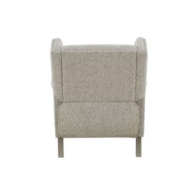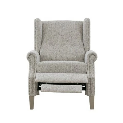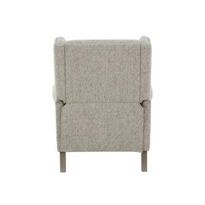 The Brookdale Push Back Recliner offers a classic update to your living room decor. This push-back recliner features a high back and round arms, creating a charming transitional look. The tweed upholstery is accented by the pewter nailhead detailing and pairs perfectly with the light finish on the solid wood legs. Sit back and relax in your living space by incorporating this recliner into your home decor.