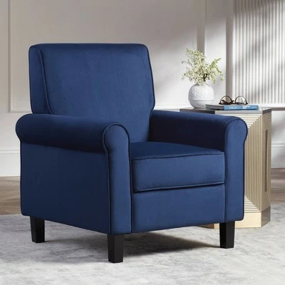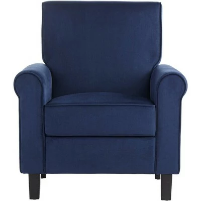Combine style and comfort into one with the Lansbury II navy velvet accent chair. It features a rich navy velvet fabric that will enhance most decor. Add this piece to your modern living room space for a fresh look.