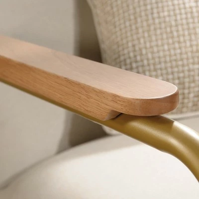 Take a seat and rest your feet. Accentuate your living space by adding the beautiful style and comfort to any room in your home with this lounge chair from Coral Cape collection. This metal lounge chair features an upholstered seat and backrest for comfort you can enjoy while you sit back and scroll on your tablet or relax while watching the evening news. Its two armrests are accented with wood arm caps for an extra touch of charming good looks that is sure to stand out and catch the eye of all your guests. Attractive from every angle, this coastal cottage chair is the perfect accent piece no matter where it stands in your home β the living room, dining room, or in your office. With its ivory colored upholstery and powder coated satin metal frame, this one-of-a-kind chair gives your home the style you want with the functionality that you need.