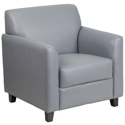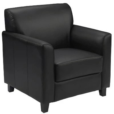 Your lobby or reception area is the forefront of your business and provides that ever important first impression. Providing distinguished and comfortable seating lets your clients know that you value their business. The modern appeal of this soft and durable LeatherSoft upholstered collection will make a lasting impression. Not only does this chair feature comfortable cushions, flared arms and raised feet, the hardwood construction frame will give you many years of use. The raised block feet look great and make it easier to clean the flooring beneath. This reception chair is perfect for the office as well as waiting room seating. The contemporary design of this furniture adapts in several different settings. This upholstered chair will not only fit in a professional environment, but will add a modern look to your home. Additional Features: Foam Filled Cushions with CAL 117 Fire Retardant Foam, Hardwood Frame Construction for longevity, Finished Feet for easy floor maintenance, Upscale seating for commercial environments also suitable for home office spaces