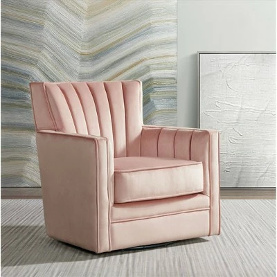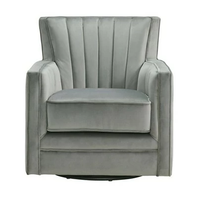 The Picket House Furnishings Lawson Swivel Chair is the epitome of elegance and simplicity. Featuring a modern design with soft, velvet upholstery and channel back detailing. Constructed with solid wood and plywood for sturdiness. The Lawson Chair also features a 360 swivel base, so you can easily join any conversation. This chair is the ultimate statement piece for your beautiful space.