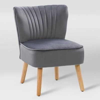 Looking to add an accent chair to your living room or bedroom? Upholstered in a soft and rich velvet this armless chair brings a modern feel to any space. The Channel tufting paired with the flared back adds to the chic style of this versatile chair. Finishing the look with four solid wood tapered, legs that add stability to this multifunctional piece.