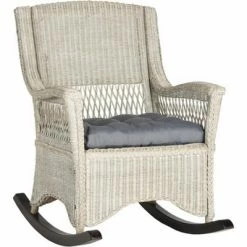 The clean, classic look and detailing of this Mission-style furniture is unmistakable. Our Thomas Mission rocking chair makes a relaxing addition to any seating ensemble. Crafted of select hardwoods in a rich chestnut finish, this chair features a clean-lined, high back and fixed arms adorned with vertical slat details, while two curvy gliders let you rock back and forth with ease. Rounding out the design, the firm foam-cushioned box seat is upholstered in easy-to-clean faux leather for a handsome finish.