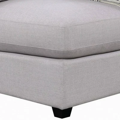 Enhance your living room aesthetics with the setting up of this contemporary Corner Piece. Constructed sturdily on a wooden frame and upholstered in a gray linen fabric, it comes with reversible cushioned seating, wrapped in feather down for extreme comfort. Supported on tapered block legs, it complements a contemporary setting with its appealing design