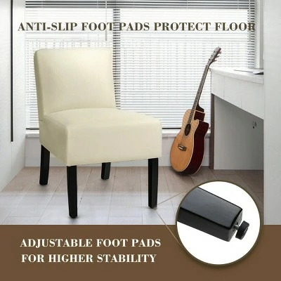 This armless accent chair is your good partner in daily life and provides a great place for you to relax. This fabric upholstered chair with a curved backrest support your back perfectly and release the pressure. Without armrest, you can stretch your body freely. Covered by breathable linen cloth and filled in thick sponge, the chair is comfortable and wear-resistant. The solid construction ensures the stability and load bearing. What’s more, this side chair is versatile and fits for various decorations, so you can use it in living room or dining room. Specification: Color: Beige/Grey. Material: Pine wood, Sponge, Linen. Overall Dimension: 27” x 20.5” x 30” (L x W x H). Net Weight: 18 lb. Load Capacity: 330lb. Package Includes:. 1 x Armless Chair. 1 x Assembly Instruction.