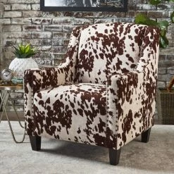- Modern Upholstered Club Chair with Milk Cow Velvet Fabric