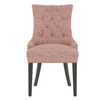 Elegant yet understated style is easy to come by with the Geneva English Armchair from Threshold™. Diamond button tufting adorns the upholstered seat back for traditional influence, which beautifully pairs with the slight wingback silhouette. This gives it an elevated look that remains simple enough to let the piece work well with a variety of spaces and design styles — just change up the aesthetic by adding on an accent pillow or throw blanket that suits your personal style. Slender, tapered legs with a darker finish complete the piece for a minimal yet definitive touch.