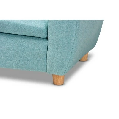 Easily enhance your childโs room or play area with the Gloria armchair. Made in China, the Gloria is comprised of a wooden frame padded with a generous layer of foam and upholstered in a vibrant sky blue fabric. The backrest features two yellow buttons and two fabric ears, accenting the Gloria with child-like imagination and allowing the piece to easily blend in with toys and stuffed animals. Requiring minor leg assembly, the compact size of the chair ensures easy and comfortable use for small children. A friendly design that also provides superb comfort, the Gloria chair is an excellent addition to any play space.