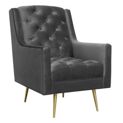 The Picket House Furnishings Reese Button Tufted Chair with Gold Legs is the epitome of modern glam design! This chair features a super luxurious velvet-like fabric, that feels good to the touch. Button tufting on the back and seat bring the glam, while the gold metal tapered legs bring the modern design.