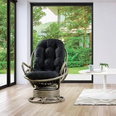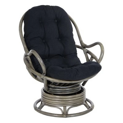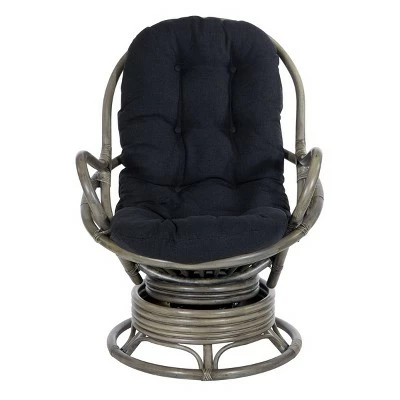 Kick back and relax with our Tahiti Rattan Swivel Rocker. This woven rattan rocker will turn up the wow factor in any room. A great seating option for watching movies, gaming or just kicking back and taking it easy. Plush poly-fill cushion with channel pocket stitching, in 100% Polyester, creates billowing comfort. Simply tie cushion onto solid rattan and woven frame. Smooth ball bearing swivel action and relaxing rocking motion will ease away the day’s stresses while adding natural Boho style to your home. Simply untie the ample removable cushion and shake out to fluff up for years of sublime, cozy comfort.