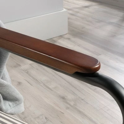 - Arms accented with wood caps for an extra touch of style