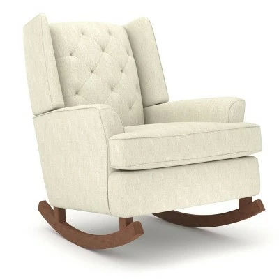 It’s human nature. A gentle rocking movement almost automatically lulls you into a state of complete relaxation. You can let go of your thoughts, forget about your to-do list and just be in the moment with your special little someone. The inviting made in the USA Best Chairs Ames rocking chair helps facilitate that sense of easy repose. A button tufted back and updated wings gives the Ames that look of lavishness and familiarity. The hardwood runners will transcend to any dรฉcor from the nursery to bedroom or living room. The seat cushion made of high resiliency foam is reversible to help extend the new look or hide those hard to avoid stains.
