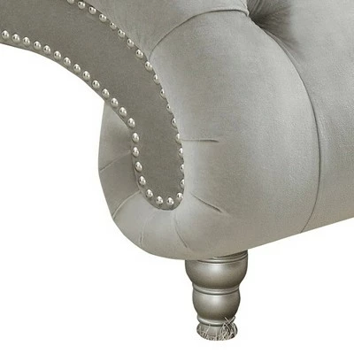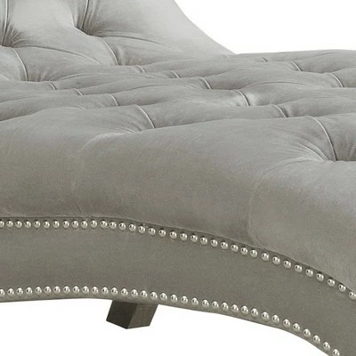Enrich your living room collection with the inclusion of this Chaise. Constructed using wood, it comes with fabric upholstery in gray color with deep button tufted details. The individually applied nailheads along the edges further accentuate its overall design.