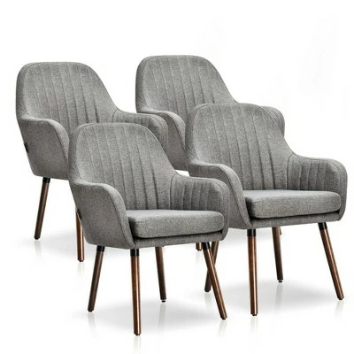 These leisure chairs are built to offer the most comfortable sitting experience. A cushion filled with thick sponge comes with great resilience, which provides soft support and relieves you from long-time sitting. The backrest features a curved design so as to reduce back pain and any discomfort. On both sides, ergonomic armrests comfortably support your hands. Meanwhile, the chair is covered with soft linen fabric, serving to keep you naturally dry and comfortable on sultry days. You also don’t have to worry about its using life and reliability. The char is firmly crafted with rubber wood, which is durable and stable enough for long-time use. The leisure chair set is exactly what you need for leisure time. Specification: Color: Beige/Gray. Material: Rubber Wood + Linen Fabric + Sponge. Product Dimensions: 24.5” x 25” x 34.5” (L x W x H). Cushion Size: 17.5” x 17.5” x 3” (L x W x H). Net Weight: 75 lbs. Maximum Weight Capacity: 264 lbs. Package includes:. 4 X Leisure Chair. 1 X User Guide.