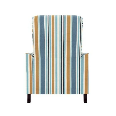 The Evy reclining chair features half-round arms and a box seat cushion design that is not only comfortable but beautiful as well. Simply push back to recline, no levers or handles required for comfortable long term sitting, TV viewing or just a relaxed recline. This update of a classic style will provide the perfect accent for a living room, media room or master bedroom.