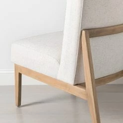 Give your home a dose of fresh style with the Upholstered Natural Wood Slipper Accent Chair from Hearth & Hand™ with Magnolia. Featuring an oversize seat cushion and backrest set on a low-rise wooden frame with a light finish, the understated style and clean lines of this armless slipper chair update your space with modern appeal. Fabric upholstery gives the chair a comfortable surface while blending easily with your existing decor, while the generously stuffed seat and back cushion make the chair extra inviting. Style as is for a tidy minimalist look, or add a textured or printed pillow for an appealing touch of contrast.