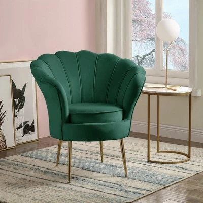 Flash Sale ๐Ÿงจ Simple Relax Velvet Scalloped Back Barrel Accent Chair with Metal Legs in Green ๐Ÿ˜