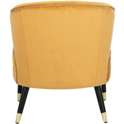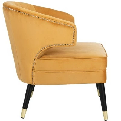Curl up and unwind in this retro style wingback accent chair. Inspired by vintage designs, its plush velvet upholstery with luxurious channeling is an instant invitation to relax. The chic metal caps on its wood legs complete its retro look. Care Instructions: To prevent overall soiling, frequent vacuuming or light brushing is recommended. Cushions and pillows should be turned on a weekly basis. Down filled cushions should be brushed rather than vacuumed. Spot clean, using a mild water free solvent or dry cleaning product. Only a professional cleaner should undertake a complete overall cleaning. The use of steam or water based cleaners may cause excessive shrinking or staining.