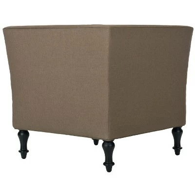 A contemporary iteration of a loveseat and far more cozy than its traditional counterparts, this club chair’s sleek and angular lines are softened with button-tufting. With turned legs in black-finished birch wood, and olive-toned linen polyester upholstery, this upholstered chair becomes a focal point in living room, family room or bedroom. It is available in multiple colors